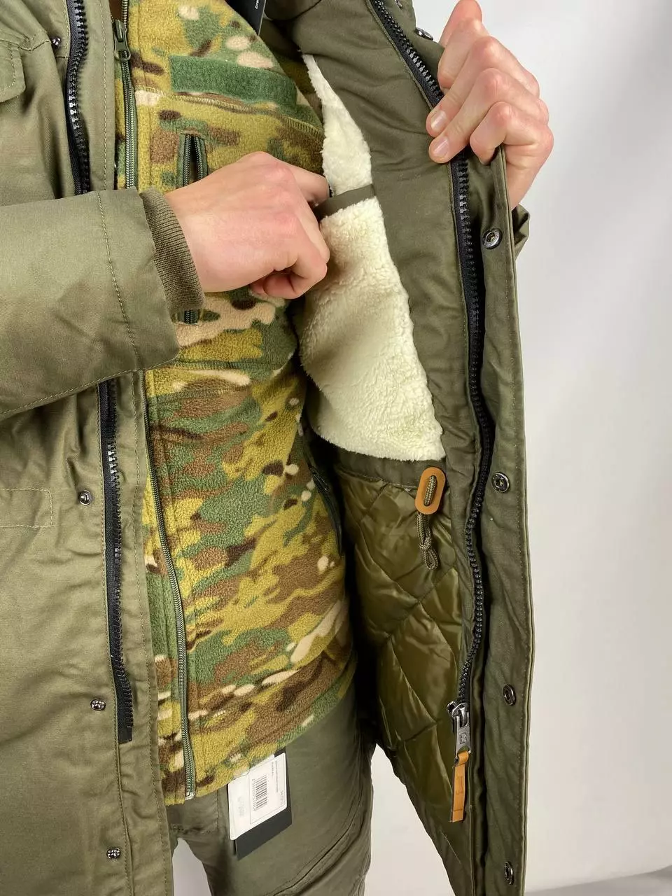 Зовнішній шар куртки виготовлений із міцної суміші поліестеру та бавовни.
